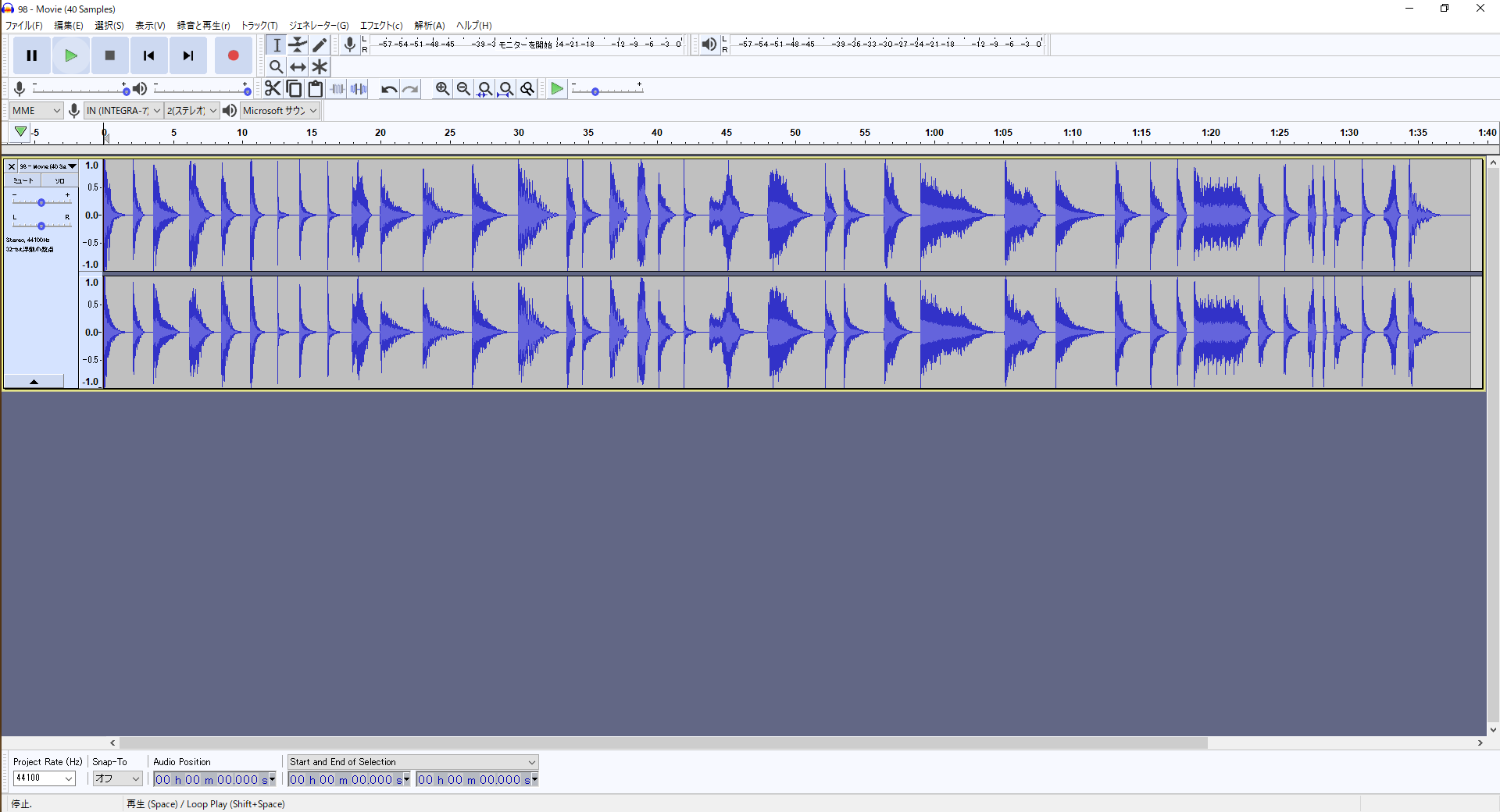 ①Audacityに1本wavを読み込む